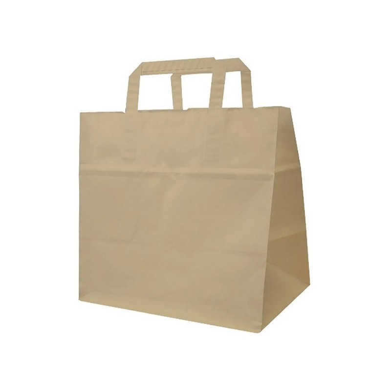 SAC CABAS KRAFT BRUN À SOUFFLETS LATÉRAUX, EN PAPIER ÉCRU 70G/M2, AVEC 14 CM DE SOUFFLET ET POIGNÉES PLIÉES, CHARGE MAXIMUM CONSEILLÉE 4 KG