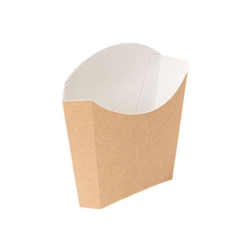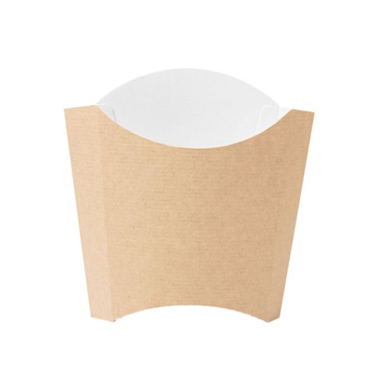 Pochette à frites standard en carton ondulé nano micro triple couche 220 g/m². Contient une couche interne de papier résistant à l'humidité et à la graisse grâce à un nouveau procédé de fabrication.